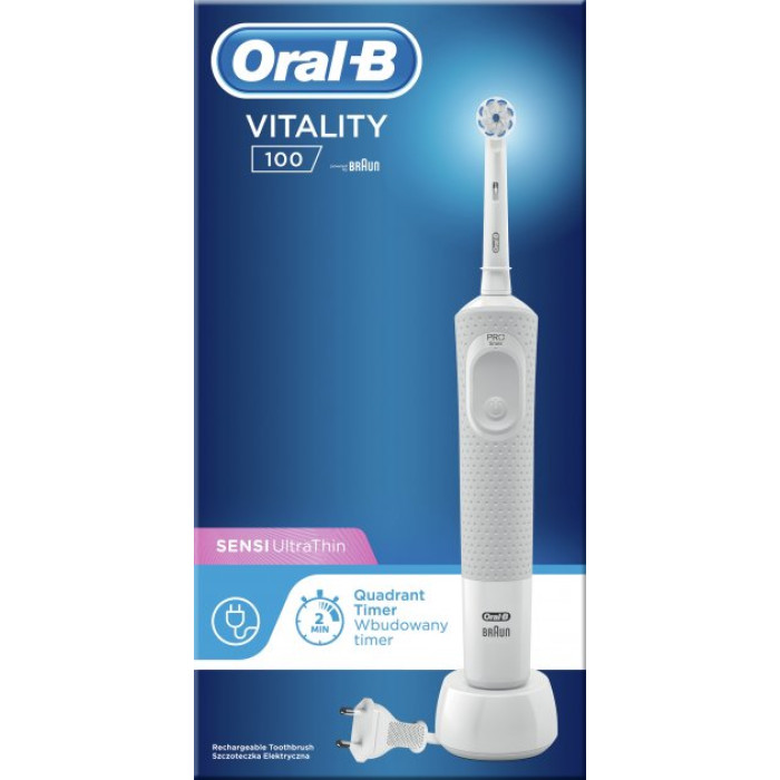 Клінічно доведено, що електрична зубна щітка Oral-B Vitality ефективніше очищає порожнину рота, порівнюючи зі звичайною мануальною зубною щіткою. Вбудований таймер сповістить вас про завершення двохвилинної процедури чищення, рекомендованої стоматологами. Зробіть вибір на користь Oral-B — марки зубних щіток № 1, використовуваної більшістю стоматологів у світі.