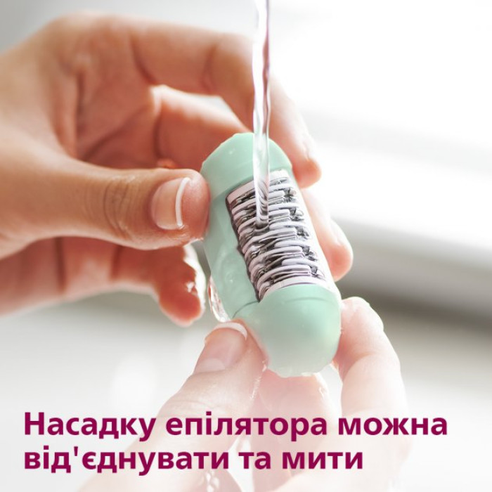 Епілятор має мийну епіляційну головку. Головка може бути легко від'єднана й очищена під проточною водою. Прилад призначений тільки для сухої експлуатації.