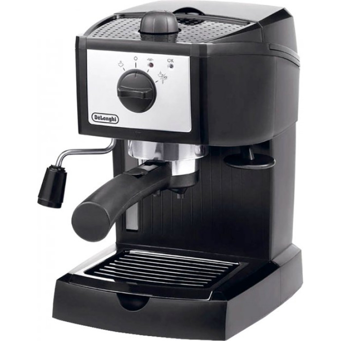Кавомашина DeLonghi EC 153 приготує справжній міцний еспрессо. У конструкції тримача фільтра передбачений адаптер для розливу на дві чашки. Кавомашина комплектується одним crema-фільтром для 1 або 2 порцій. Щоб приготувати одну порцію — засипте в фільтр 1 повну мензурку-дозатор меленої кави, для двох порцій — 2 наповнені по вінця мензурки. Кавомашина має вбудований ущільнювач кави, за допомогою якого ви легко і швидко утрамбуєте молоту каву. У даній кавомашині можна використовувати тільки мелену каву.