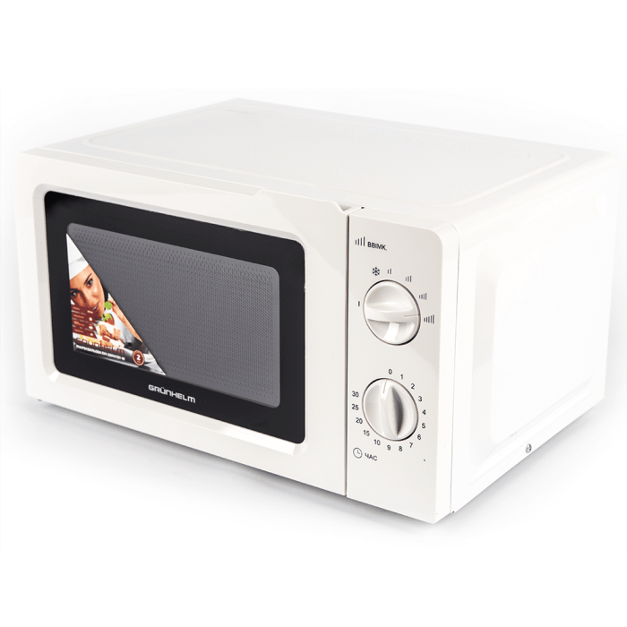 Мікрохвильова піч Grunhelm 20MX701-W Проста в експлуатації та надійна в роботі мікрохвильова піч Grunhelm стане відмінним помічником для будь-якого користувача. Grunhelm, при своїх відносно невеликих габаритах 45,1х25,6х34,5 см, надасть для роботи 20 л камеру з 245 мм поворотним столом.