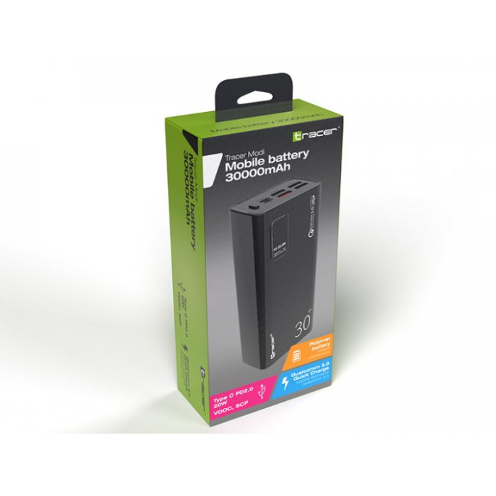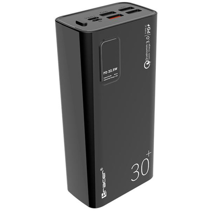 Дана модель виробництва Tracer є надзвичайно великим запасом енергії. Ємність повербанка складає цілих 30 000 мАг. Це ідеально підходить для кемпінгу, походів, тривалих подорожей і надзвичайних ситуацій. Він забезпечить тривалу підтримку гаджетів у ситуації, коли нема світла чи доступу до розетки.