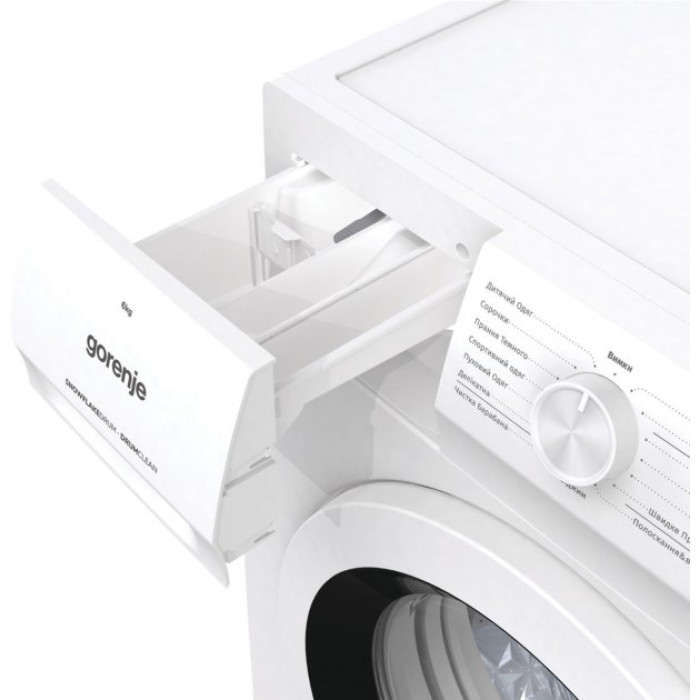 Пральна машина Gorenje Primary WHP60SF - модель із завантаженням 6 кг та швидкістю віджиму 1000 обертів на хвилину. Вона виконана у білому кольорі, відмінна риса – світлодіодний дисплей, на якому відображаються параметри роботи приладу.